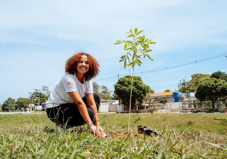 Parceria com o Sesi levou 128 alunos de turmas do 9º ano do ensino fundamental para plantar 130 mudas de árvores nativas e frutíferas ao longo das margens do Ribeirão Pinheiros na Rua Albertina de Castro Prado, no Bairro Capuava, em Valinhos, colaborando com a recomposição da mata ciliar local